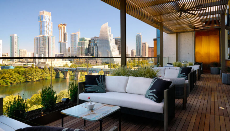 Carpenter Hotel is nestled in an old pecan grove on the edge of Zilker Park steps away from ZACH Theater. It’s an easy walk to Lady Bird Lake, downtown, and central to everything worth doing. The hotel features a pool with a community deck and Q Hut pavilion. Each of its 93 rooms comes with a terrace. Take in the scenery with fare from their all-day Coffee Bar or enjoy a meal on the patio or in the dining room of the restaurant, Carpenters Hall.