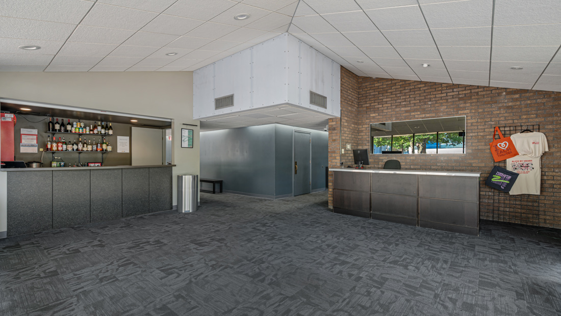 Features: Thrust stage, built-in lobby bar, and patio access. Full TABC liquor license. Lobby available separately for private events.